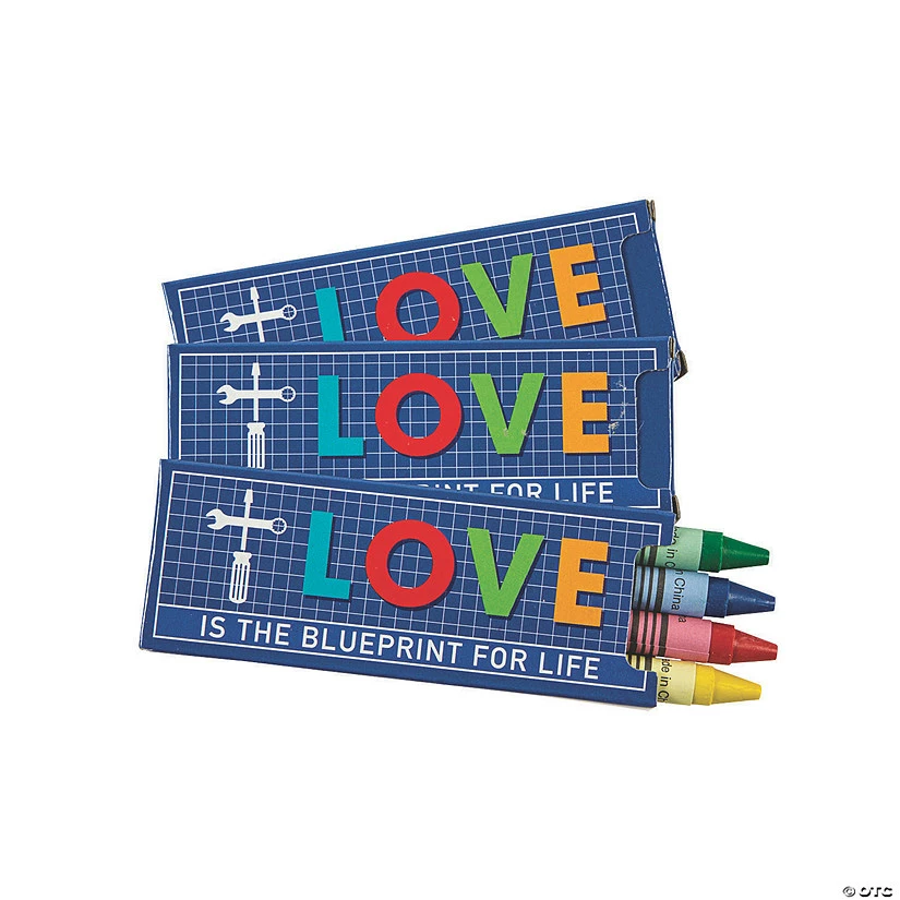 Crayons are an essential art supply for any VBS, but these crayons are especially perfect for Construction VBS. Featuring a blueprint pattern on the box along with the faith-filled message of βLove is the blueprint for life,β these crayons will delight VBS kids when coloring and art time comes around. These crayons also work well as Construction VBS prizes or giveaways! Includes 4 assorted crayons per box. 3 1/2″ Safe and non-toxic. Conforms to ASTM D-4236. Β© OTC