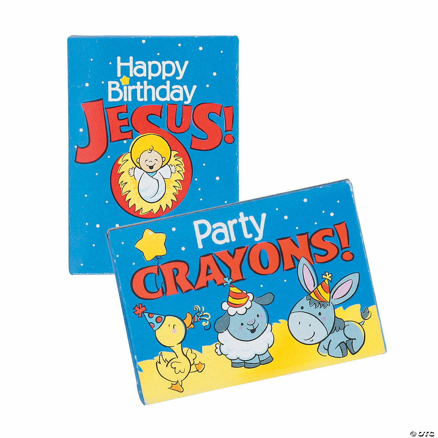 Looking for perfect stocking stuffers and Christmas giveaways? These Happy Birthday Jesus Crayons are perfect for church groups and Sunday Schools to give away to kids in Christmas goody bags. Each box features images of baby Jesus and celebrating barn animals and includes six colors of crayons. Wax. (4 dozen per unit) 2 1/2″ Safe and non-toxic. Conforms to ASTM D-4236. © OTC